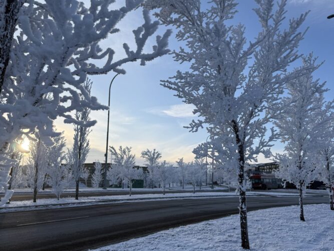 11月末頃にかなり雪が降り、その時の雪が今でも残っています。大雪の日には登校に3時間ほどかかったこともありましたが、ちょうどルームメイトの就学最終週だったため、頑張って登校しました。